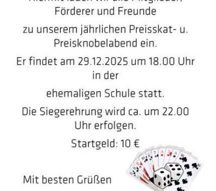 Skat u. Knobelabend vom Förderverein der FFw Brullsen Kalender Zum Kalender hinzufügen Zu Timely-Kalender hinzufügen Zu Google hinzufügen Zu Outlook hinzufügen Zu Apple-Kalender hinzufügen Einem anderen Kalender hinzufügen Als XML exportieren Wann: 29. Dezember 2025 um 18:00 2025-12-29T18:00:00+01:00 2025-12-29T18:15:00+01:00 Wo: ehemalige Schule in Brullsen Kontakt: Stefan Feuerhake, Vorstand Förderverein FFW Brullsen 0151 46323858 E-Mail