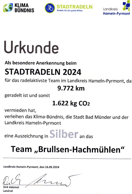 am 16. September 2024 unsere SILBER-Auszeichnung als Kommune für das diesjährige Stadtradeln entgegennehmen: