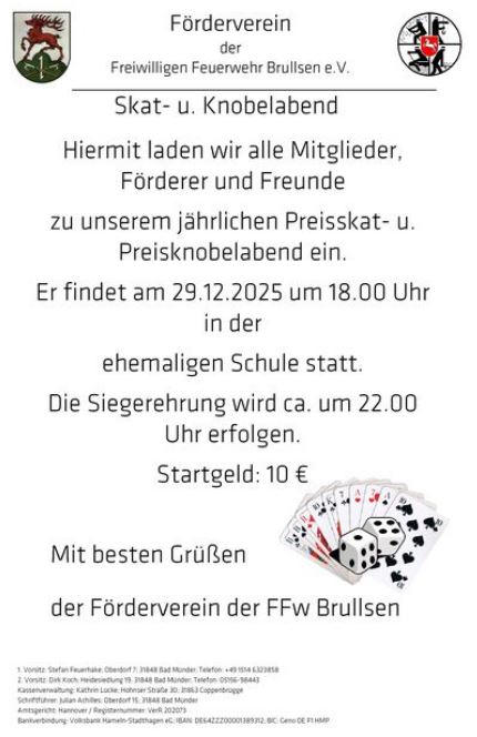 Der Förderverein der FFW Brullsen lädt ein zum Skat- u. Knobelabend 29.12.2025_Einladung Preisskat_BRULLSEN