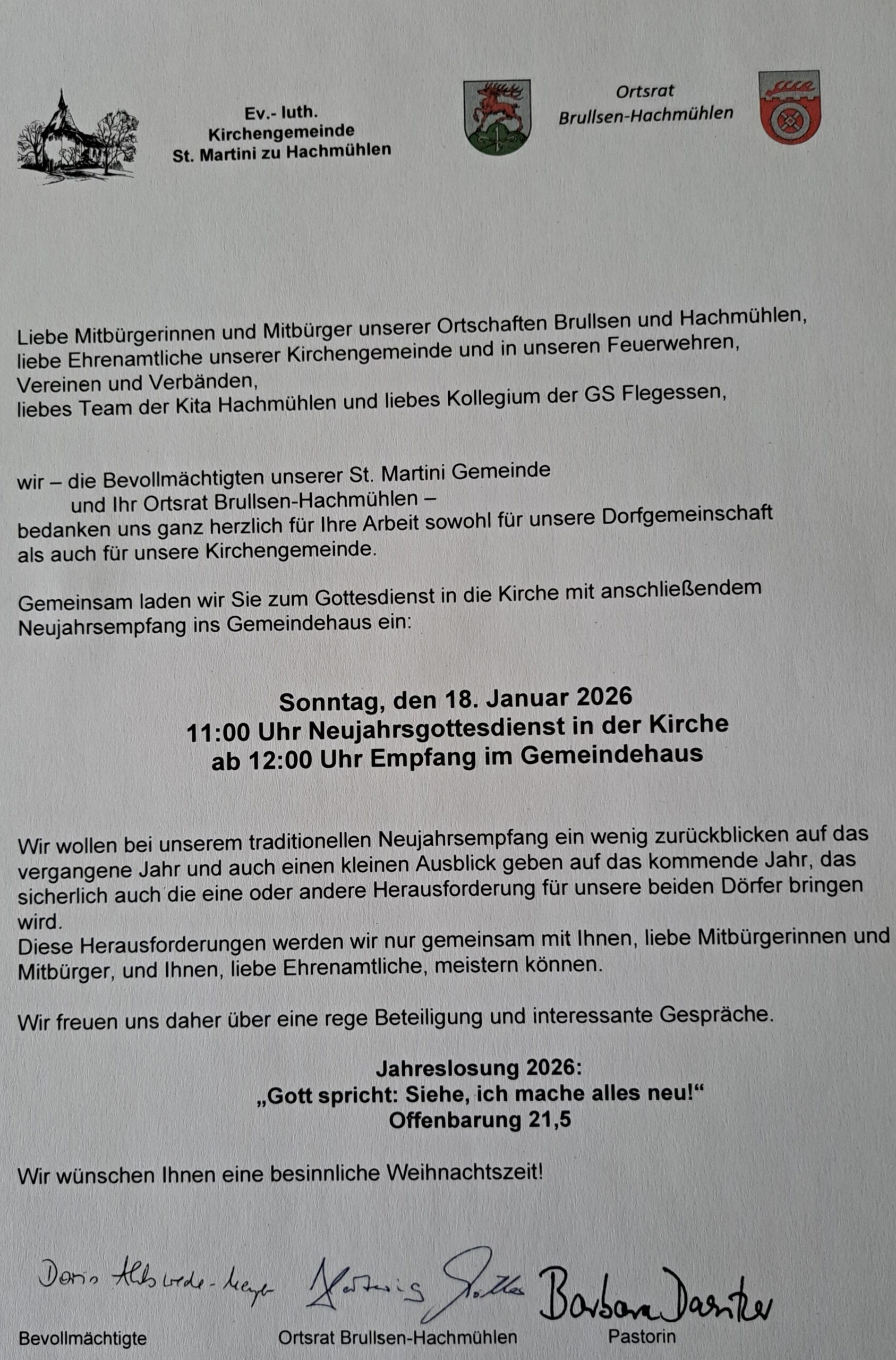 Einladung zum Neujahrsempfang der ev.-luth. Kirche u. des Ortsrates